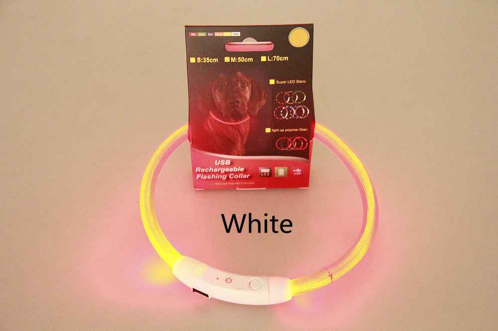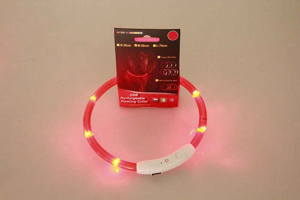 Protege a tu peludo con nuestro Collar de Seguridad LED. Gracias a su tecnología de fibra óptica, este collar emite una luz brillante visible hasta a 500 metros de distancia, asegurando que tu perro sea el centro de atención (y seguridad) en cualquier entorno oscuro.